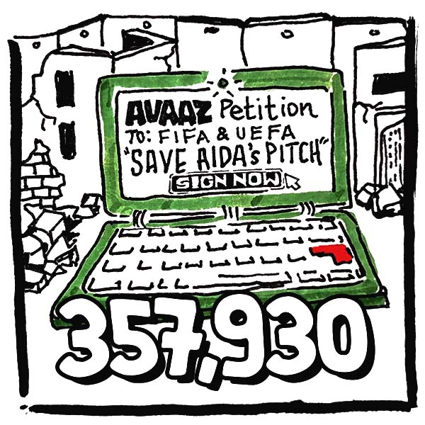 Mohammad from the Aida Youth Center called the Avaaz team and told us the football pitch was under threat from the Israeli army.  And so the kids launched a petition with Avaaz!