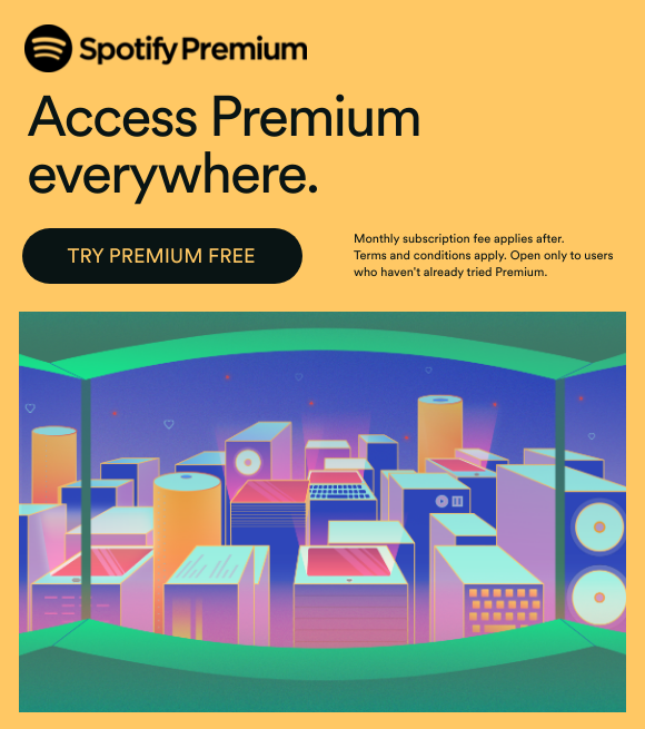 It's a whole new way to listen. And you're invited. Go Premium, get one month free. | |